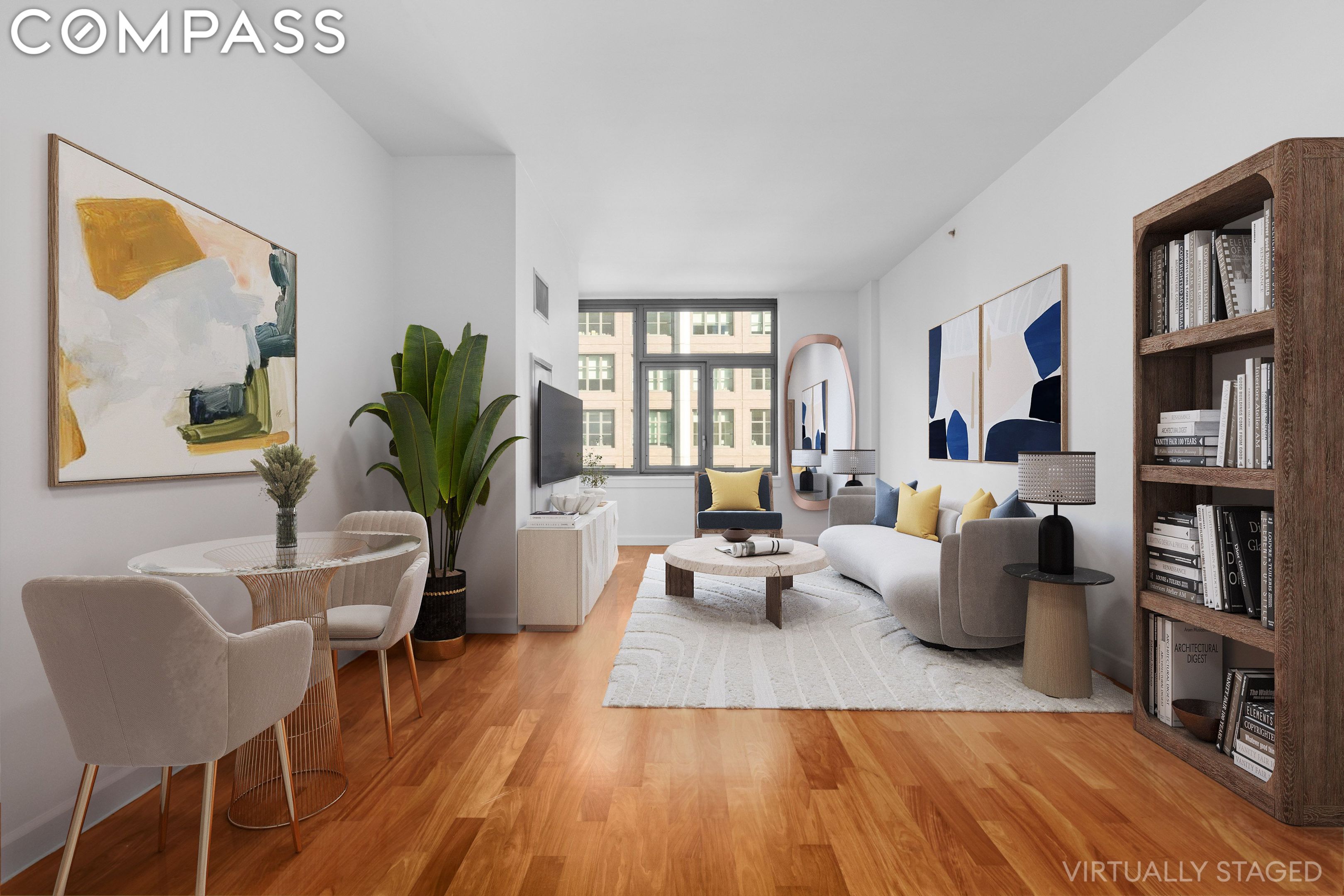 An expansive one-bedroom home in a full-service building in the heart of DUMBO offering comfortable city living with its prime location, modern features, and an array of amenities.