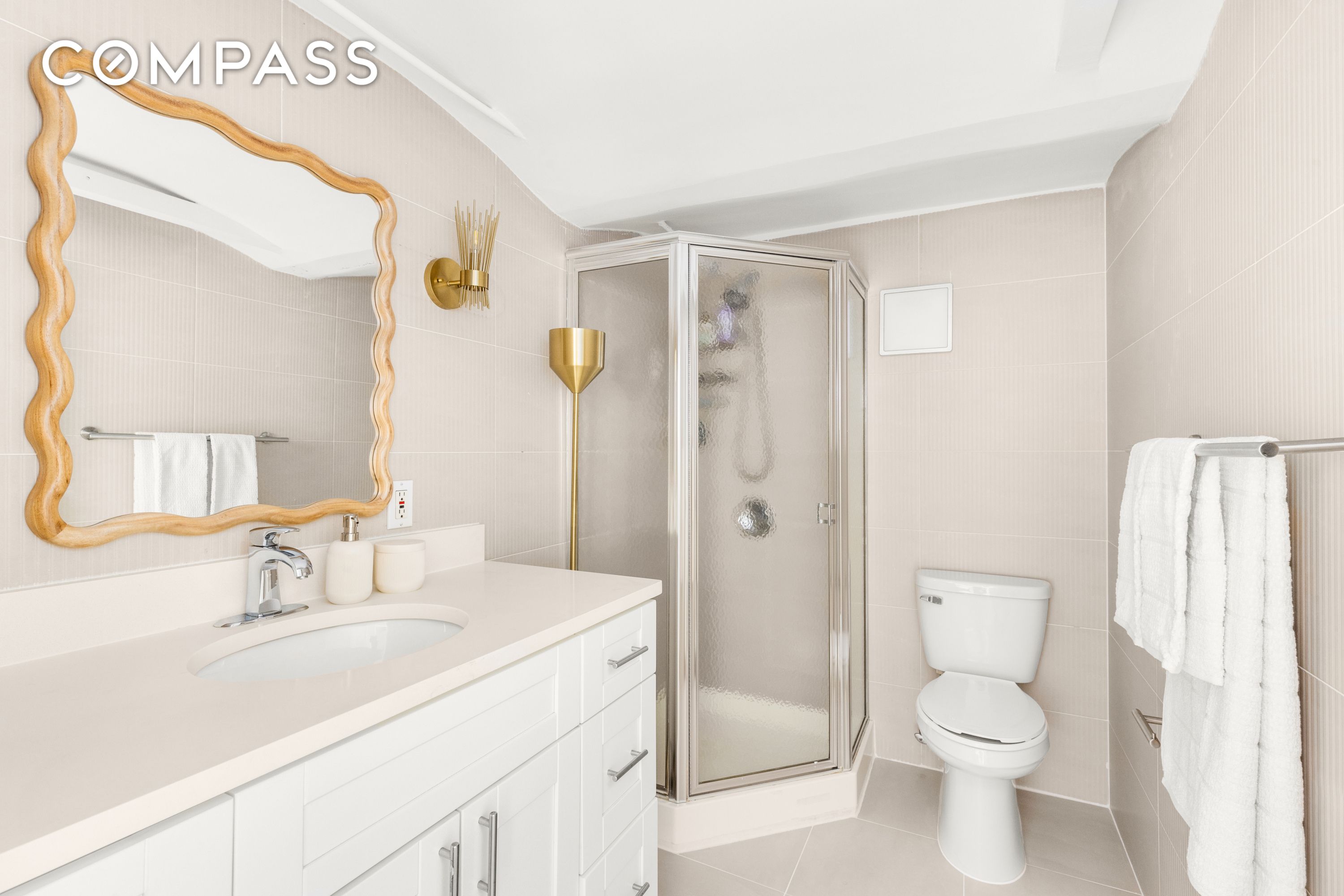 Upon entry, you're immediately struck by the dramatic 15-foot ceilings and the abundance of natural light streaming through four oversized windows into the double-height living room. The lower level offers an open, airy layout that's ideal for both entertaining and everyday living, with a windowed kitchen featuring a stainless steel farm sink, disposal, vented gas range, Bosch dishwasher, LG refrigerator, custom cabinetry, and a brand-new GE washer/dryer combo. The recently renovated full bathroom boasts clean, modern finishes, floor-to-ceiling ceramic tiles, and a large soaking tub.